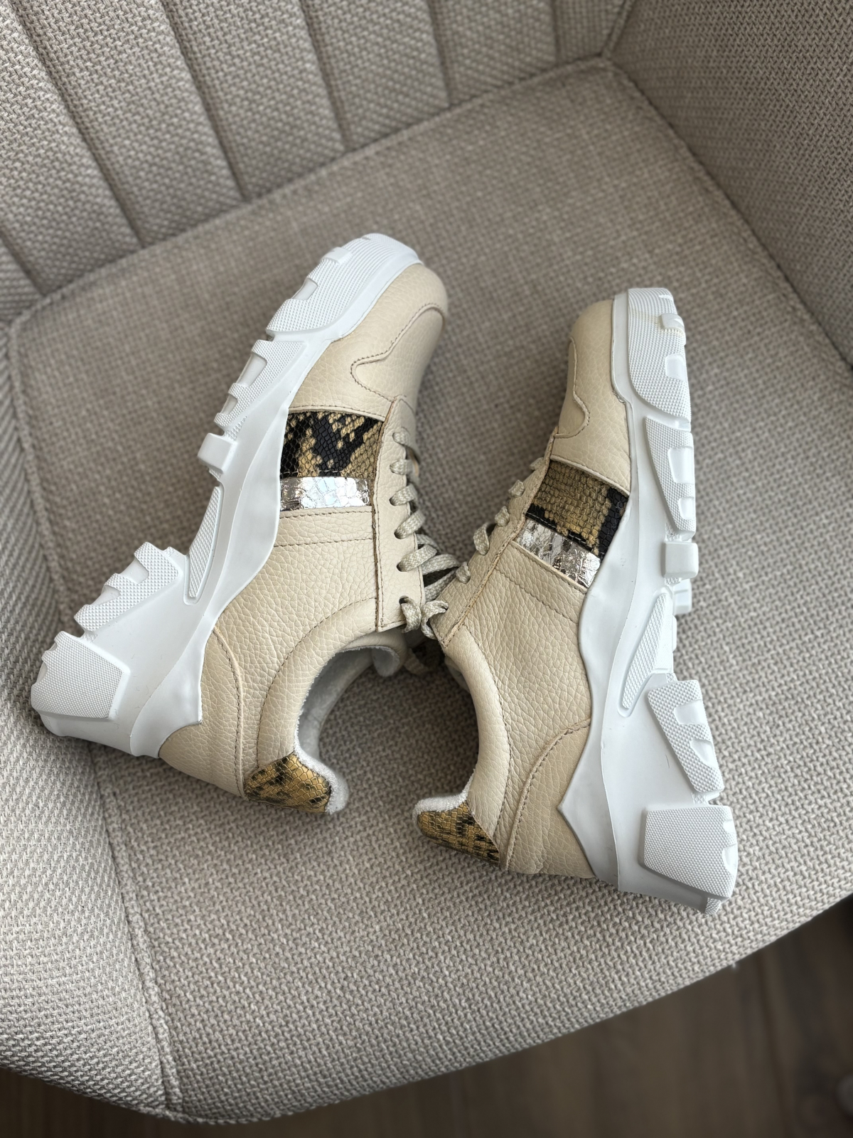 Sneakers din piele naturală, în nuanțe clasice de bej, sunt alegerea ideală pentru un look modern și versatil. Realizați cu atenție la detalii în România, aceștia oferă un design sofisticat, cu texturi variate și un contrast subtil între pielea cu aspect texturat și materialele respirabile.