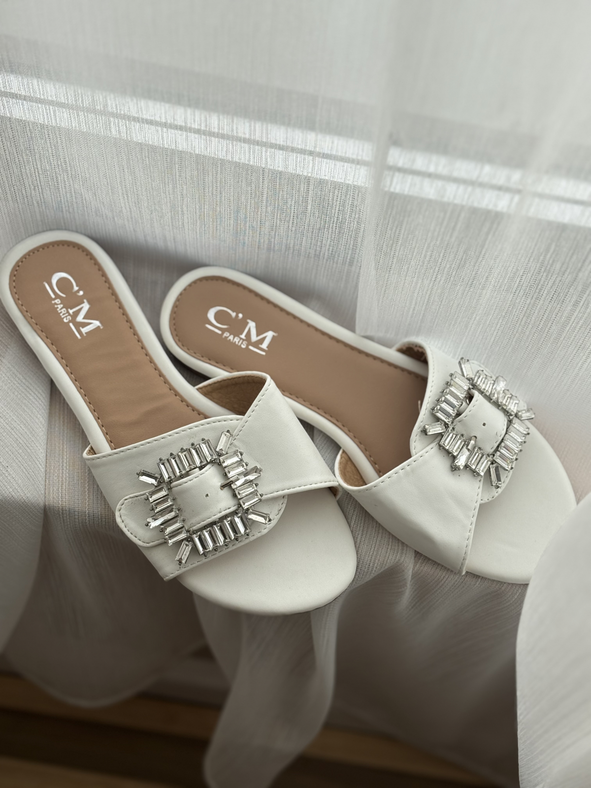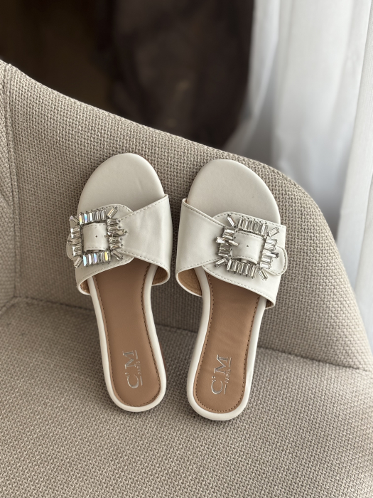 Papuci damă albi cu detaliu strălucitor – eleganță și rafinament pentru orice ocazie