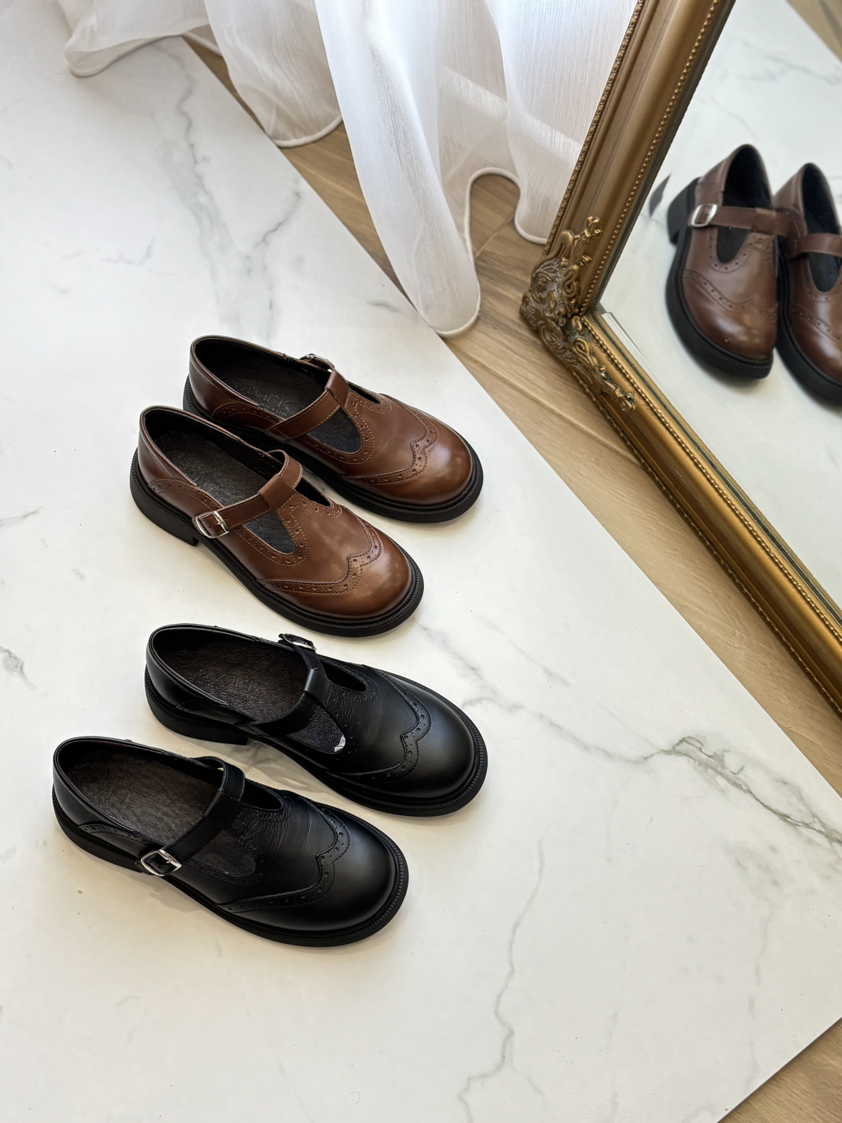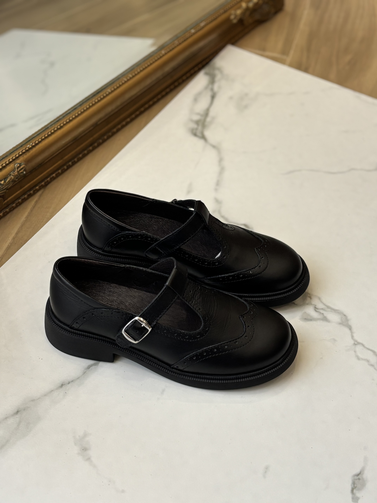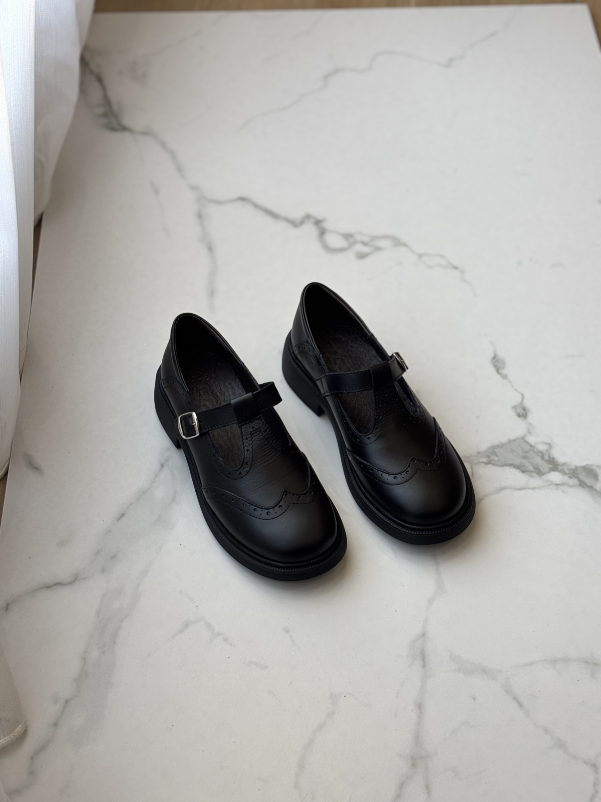 Acești pantofi eleganți, realizați din piele naturală de calitate superioară, îmbină perfect rafinamentul clasic cu confortul zilnic. Designul tip Mary Jane, cu bareta reglabilă și detalii perforate fine, oferă un aspect feminin și sofisticat, potrivit atât pentru ținute casual, cât și pentru ocazii speciale.