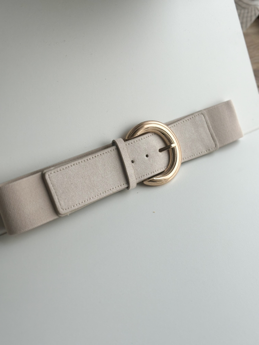 Curea elastica cu catarama aurie de culoare alb ivoire, marime universala.